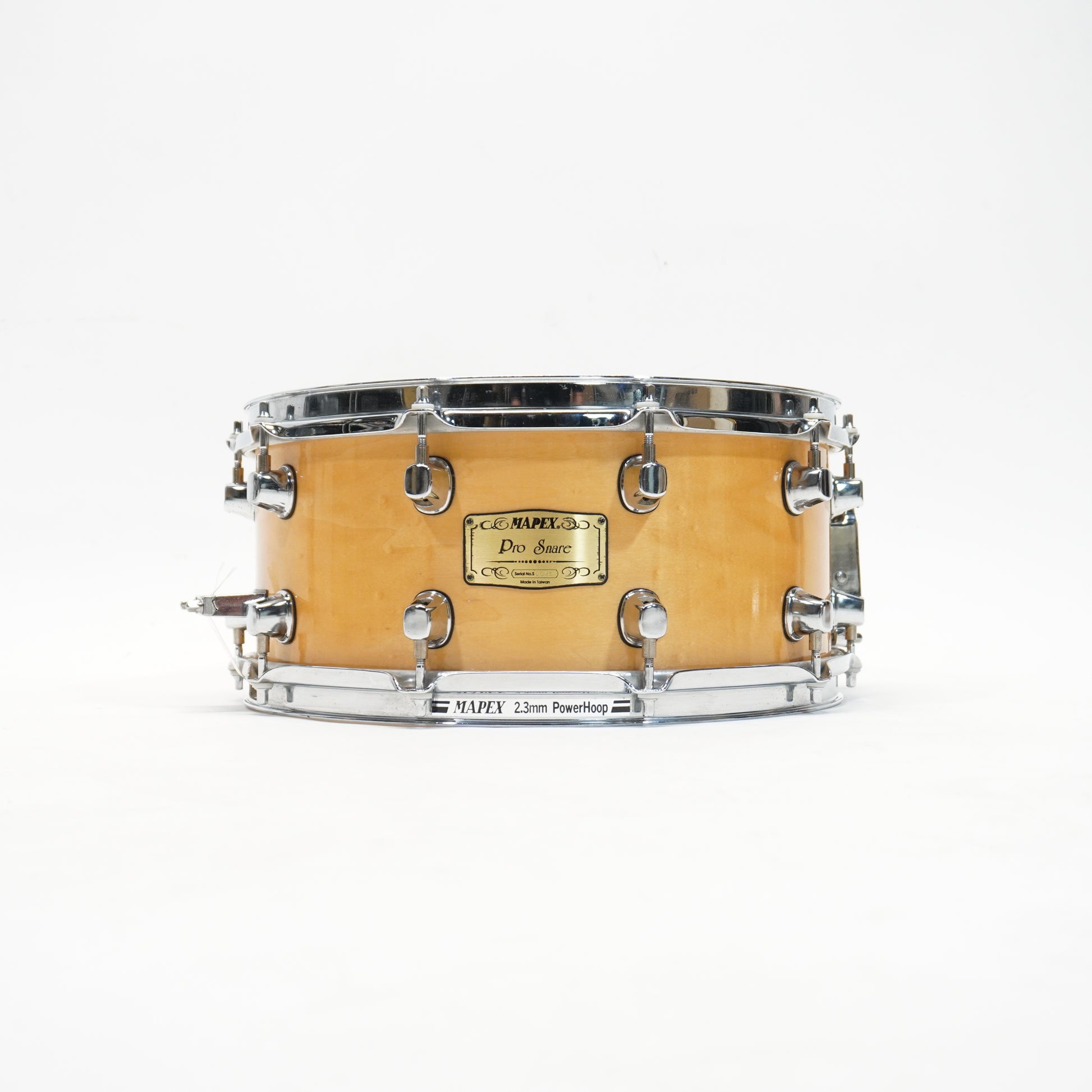 Built for power and precision, this Mapex Pro Series snare from the 2000s features a 14” x 6.5” all-maple shell, delivering warm, punchy tone with excellent projection and dynamic range.