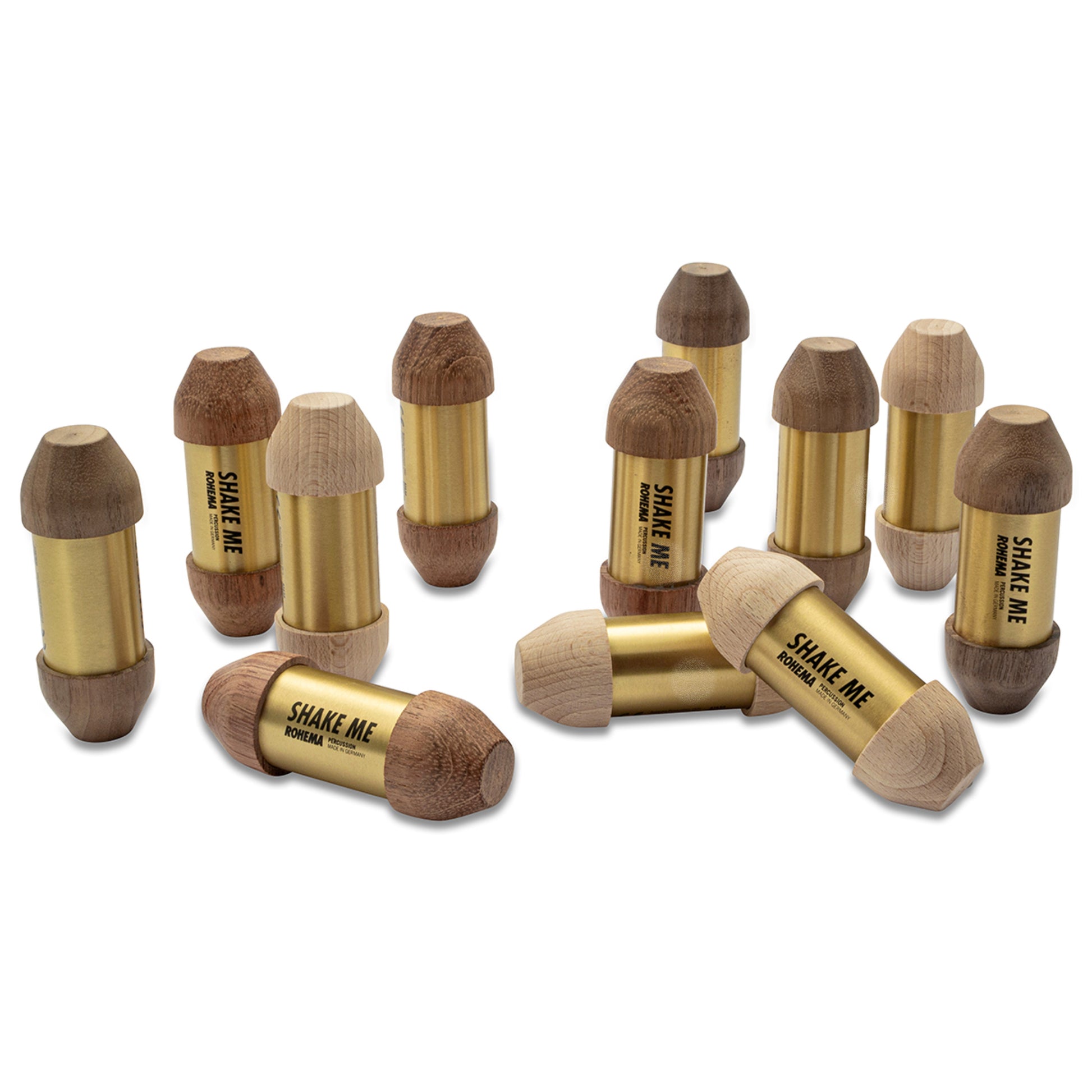 Depending on the pitch, the grain of the filling is sometimes finer, sometimes coarser. In addition, the timbre is also recognizable from the wood used. Rohema use light beech wood for the light sounding shaker, jatoba for the warm, medium pitch and walnut wood for the dark tone.